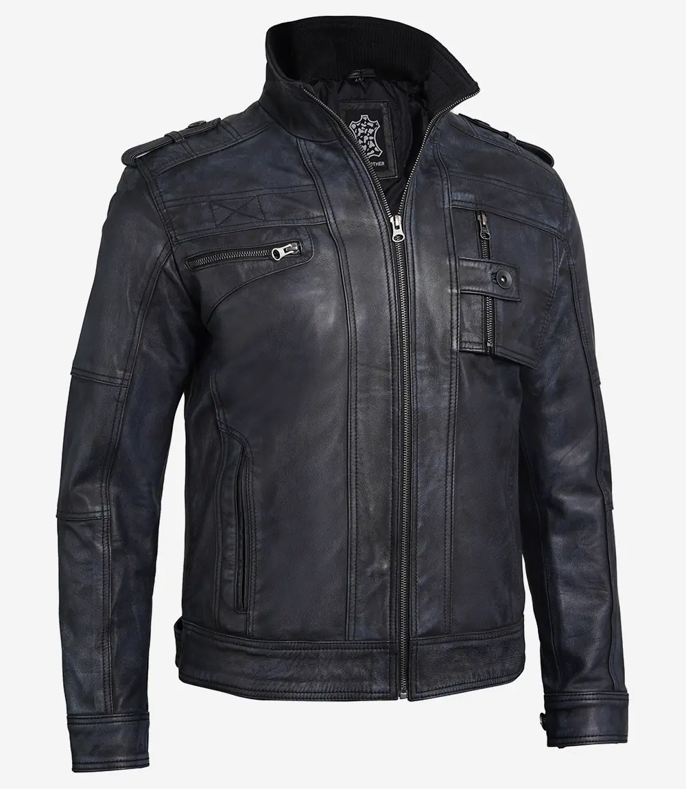 Mens Rugged Black Leather Biker Jacket