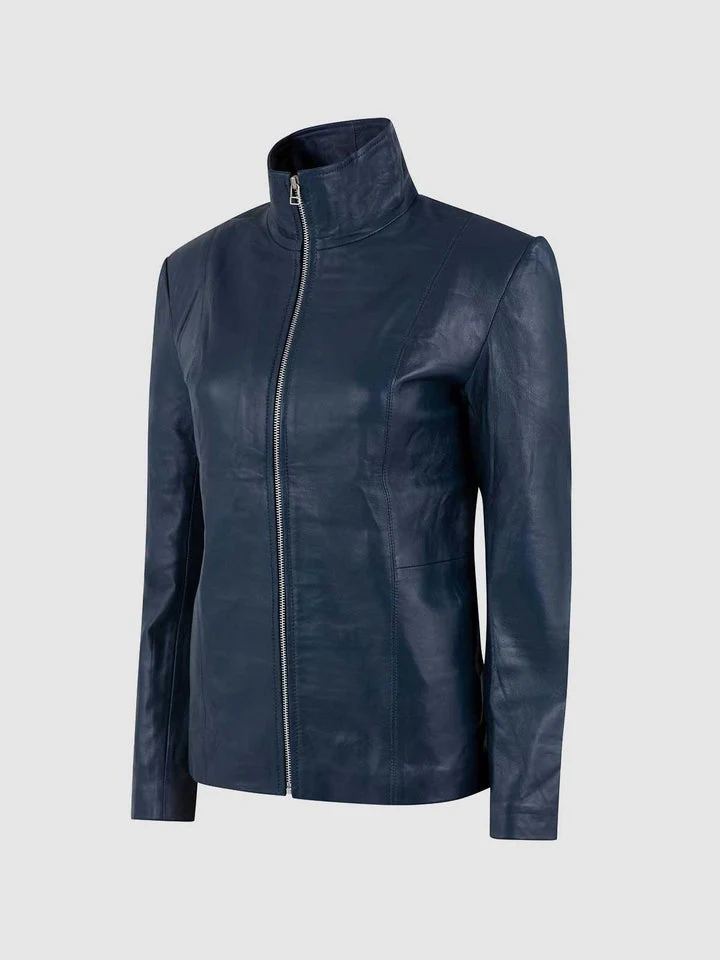 High Collar Womens Leather Jacket