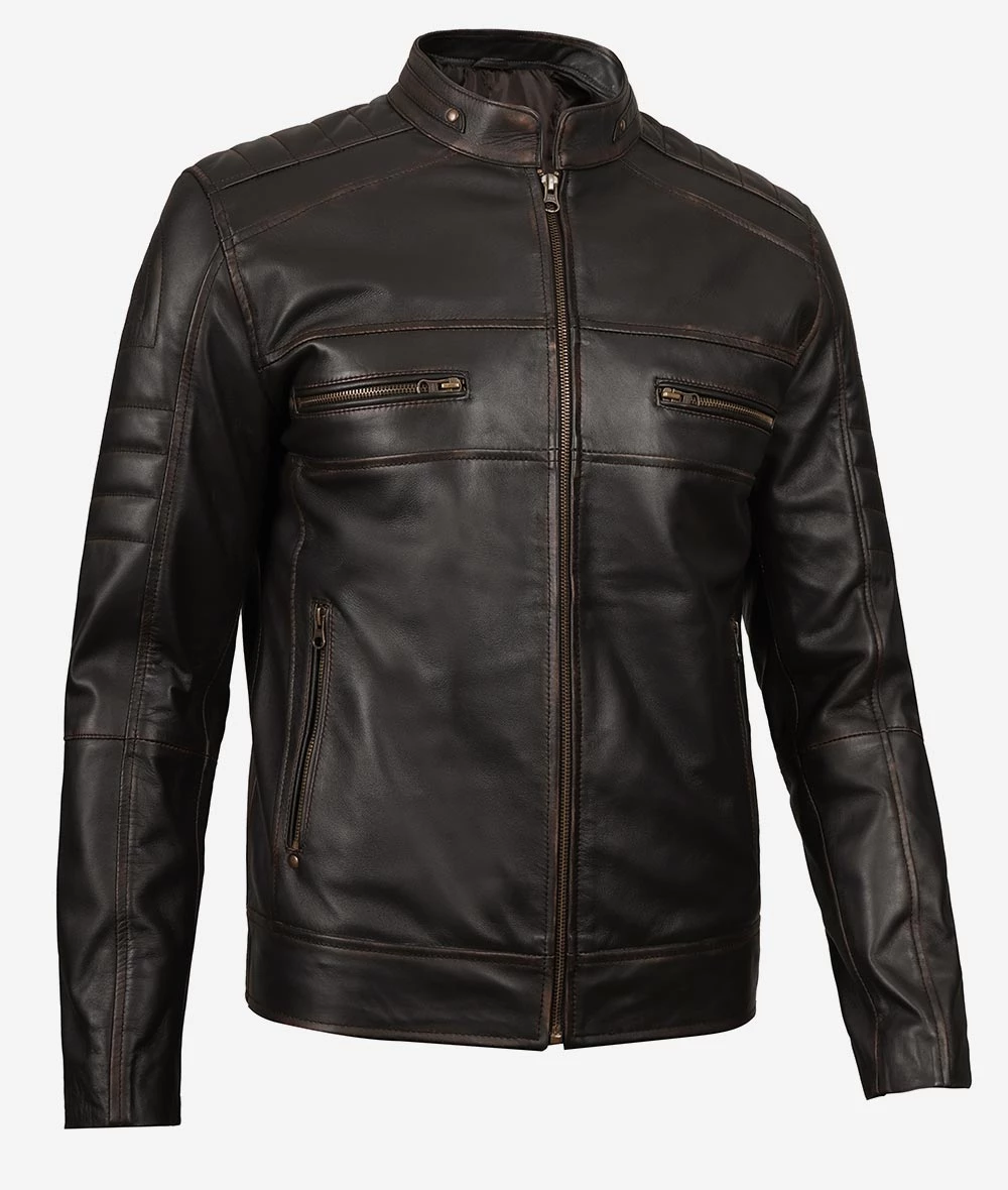 Real Leather Brown Biker Jacket for Men Vintage Style