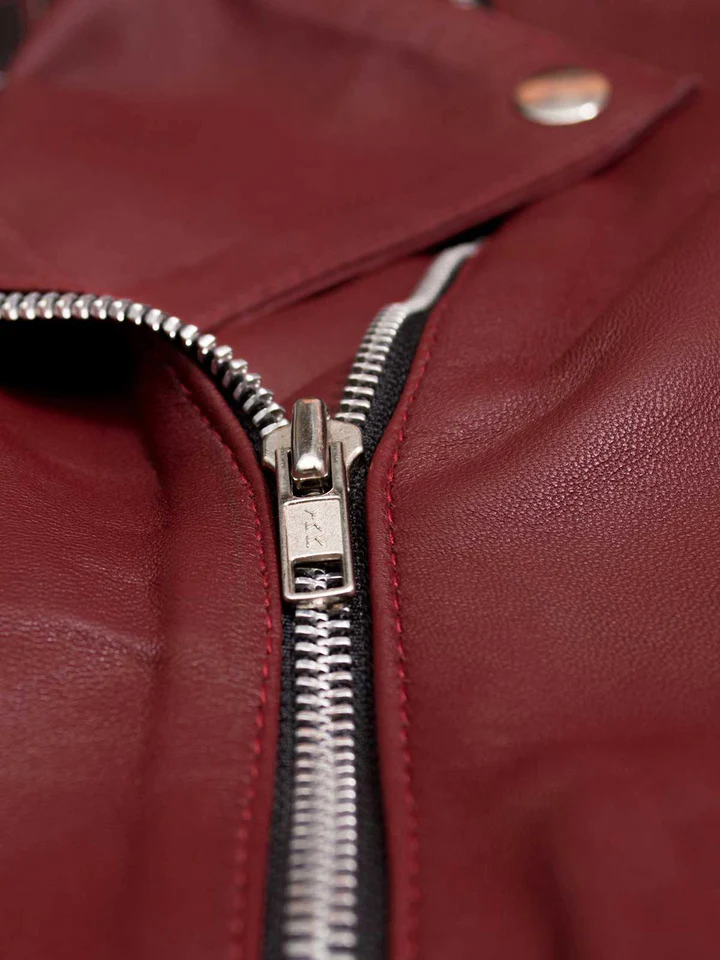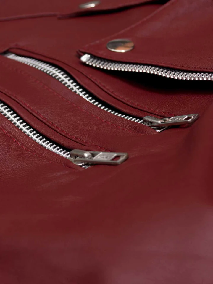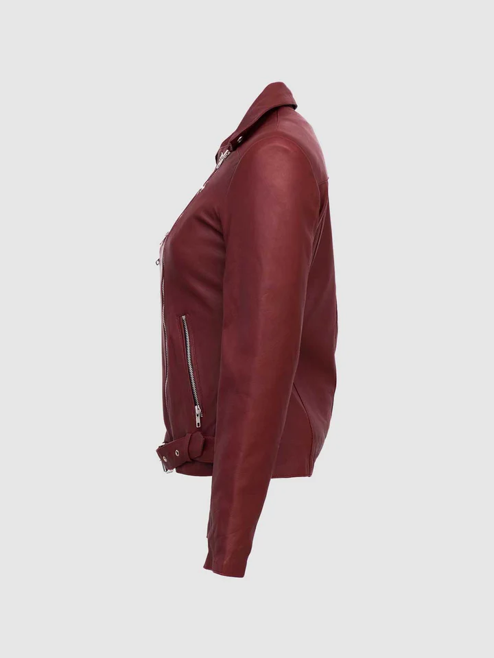 Maroon Womens Leather Biker Jacket