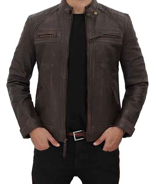 Mens Four Pocket Brown Leather Biker Jacket