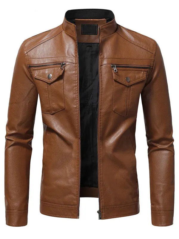 Mens Classic Slim Fit Brown Leather Jacket