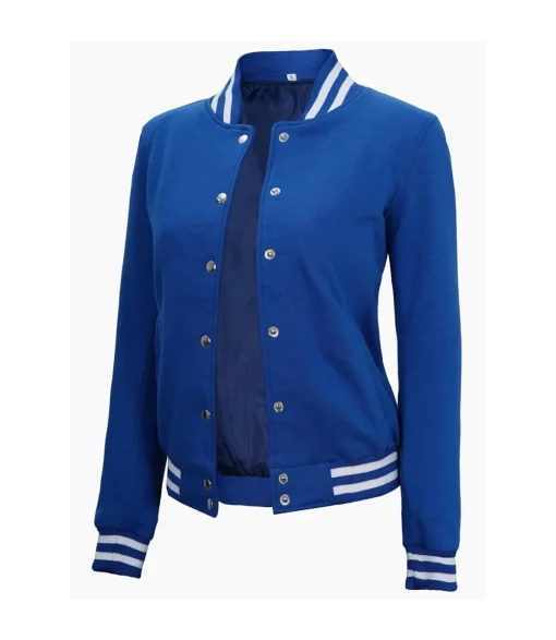 Women Bomber Style Royal Blue Varsity Jacket