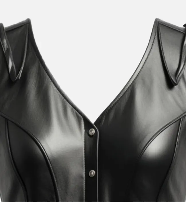 Women Retro Black Leather Biker Vest