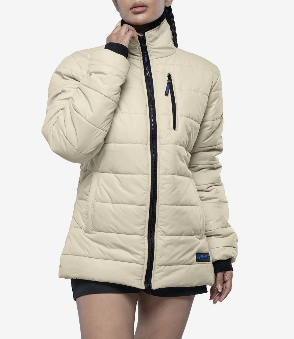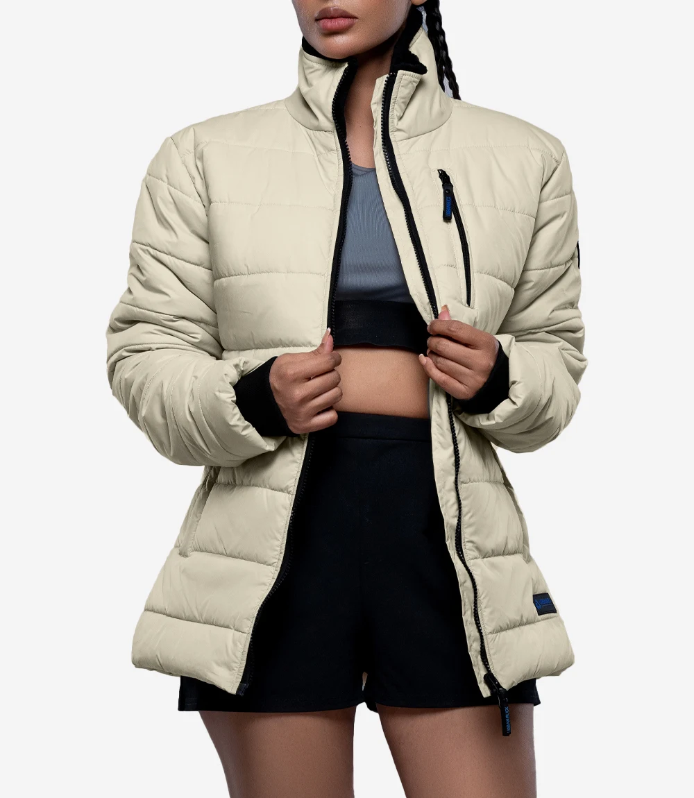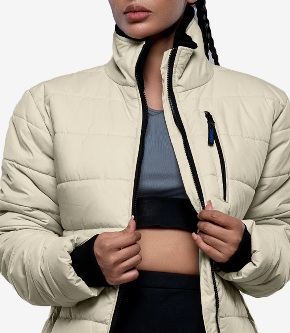Womens Quilted Style Cream Puffer Jacket With Hood