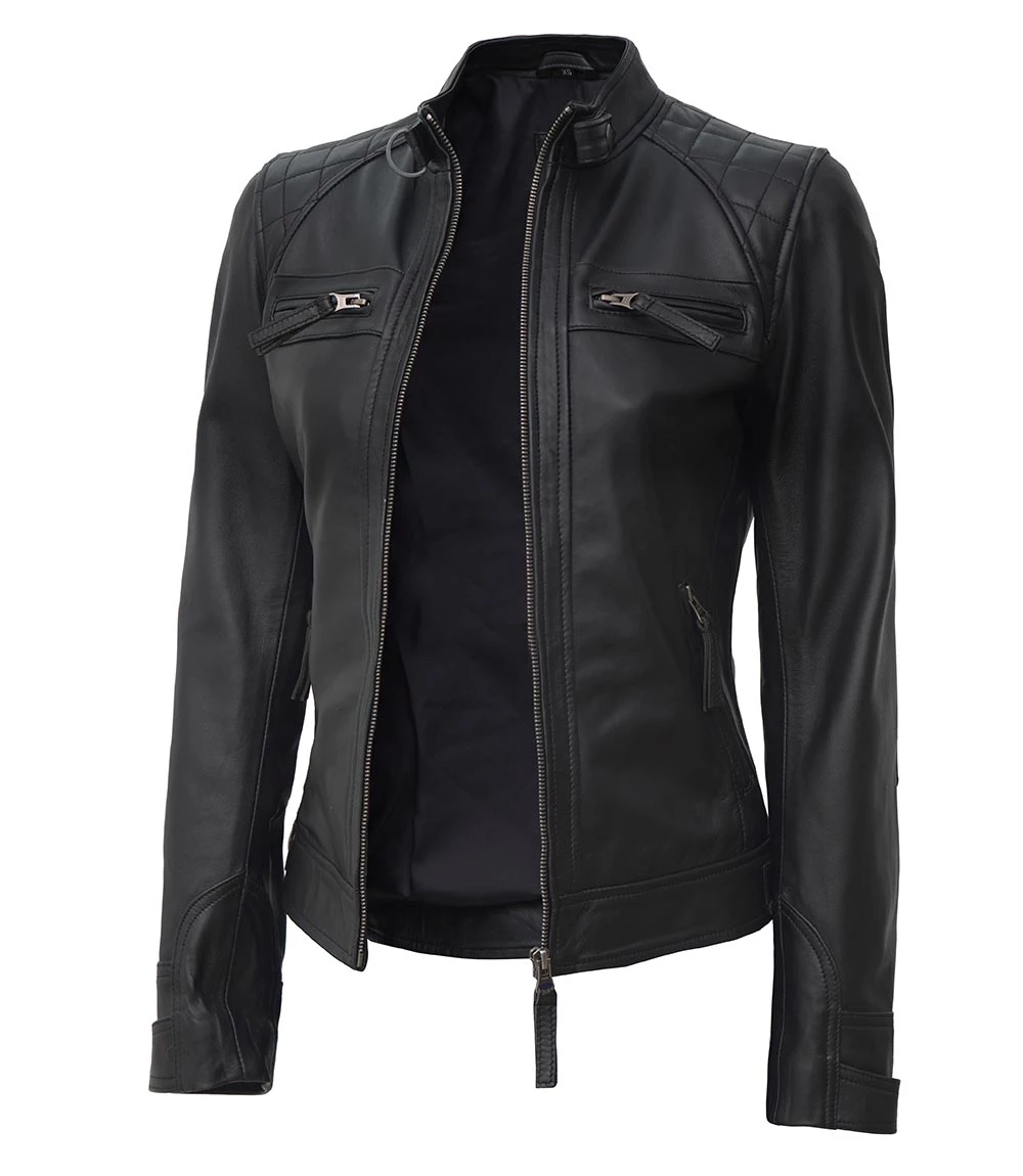 Womens Stylish Black Quilted Cafe Racer Jacket – Genuine Leather